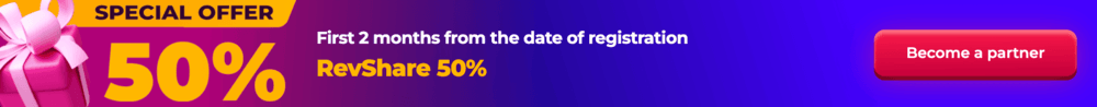 During the first 2 months from the date of registration, all partners receive 50% RevShare, regardless of the amount of traffic and GGR!