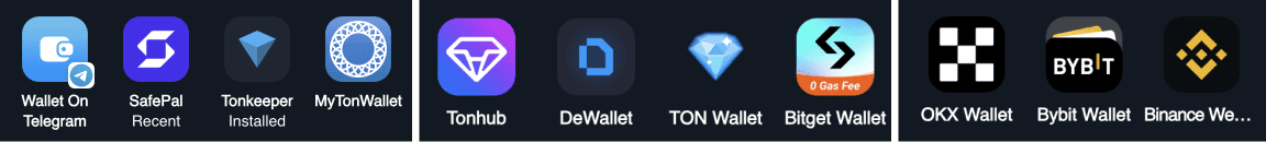 TON Connect supports multiple wallets, offering maximum flexibility when choosing. Here is the list of them:
