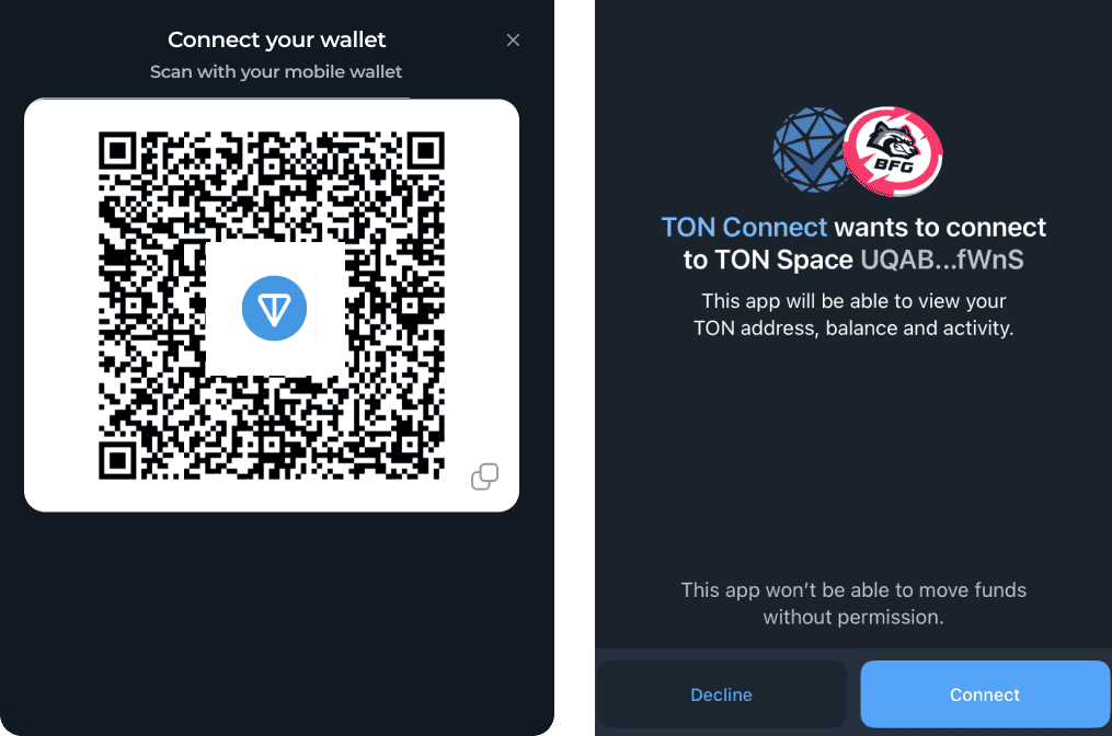You can connect your wallets using a QR code, browser extensions, or the official Telegram TON Space. It will provide quick access to your TON wallets.