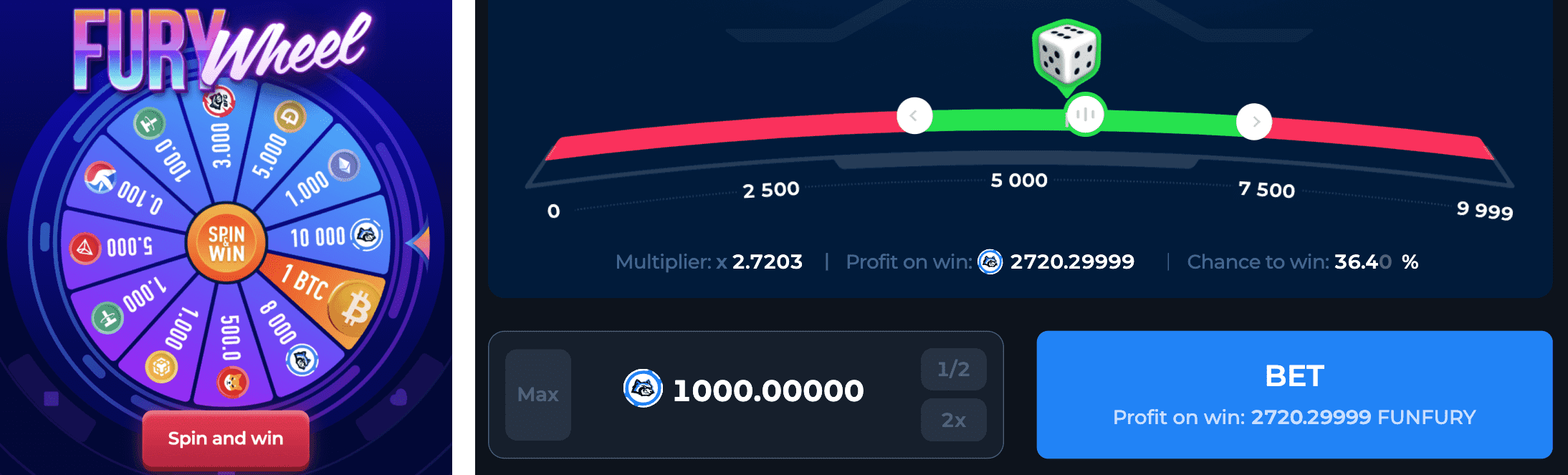 - The user spins the Fury Wheel and gets 10 000 FUNFURY.