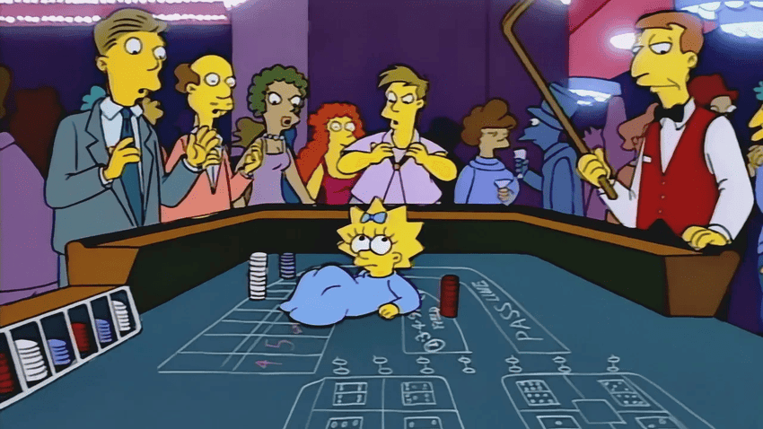"$pringfield (or, How I Learned to Stop Worrying and Love Legalized Gambling)" - 10 episode of 5 season of the American famous animated television series. In the episode, Springfield legalizes gambling to revitalize its economy. Mr. Burns opens a casino where Homer is hired as a blackjack dealer. Marge develops a gambling addiction, Bart opens a casino in his treehouse.